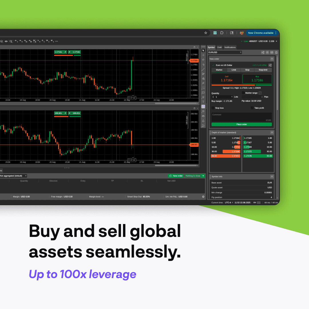Up to 100X leverage and best price execution
